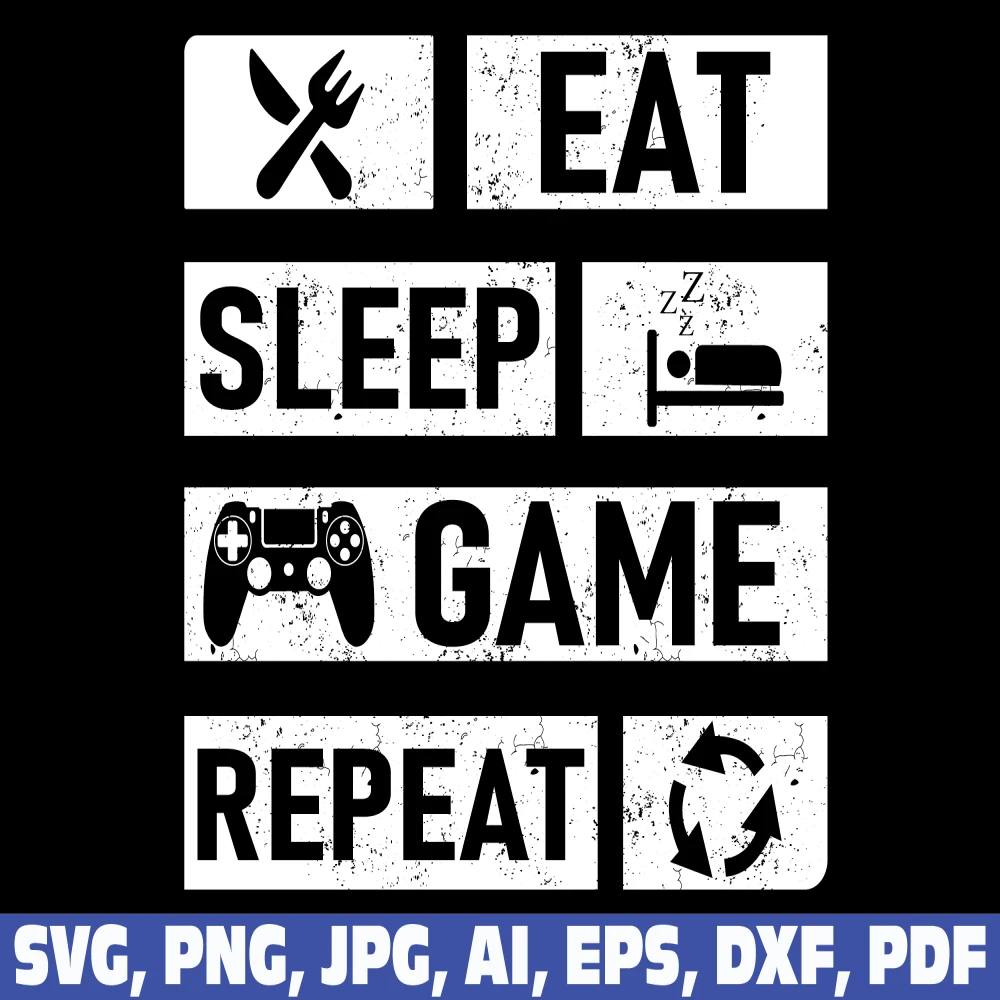 eat sleep game repeat SVG, gamer svg, video game svg, game controller svg, gamer shirt svg, funny gaming quotes, game player svg