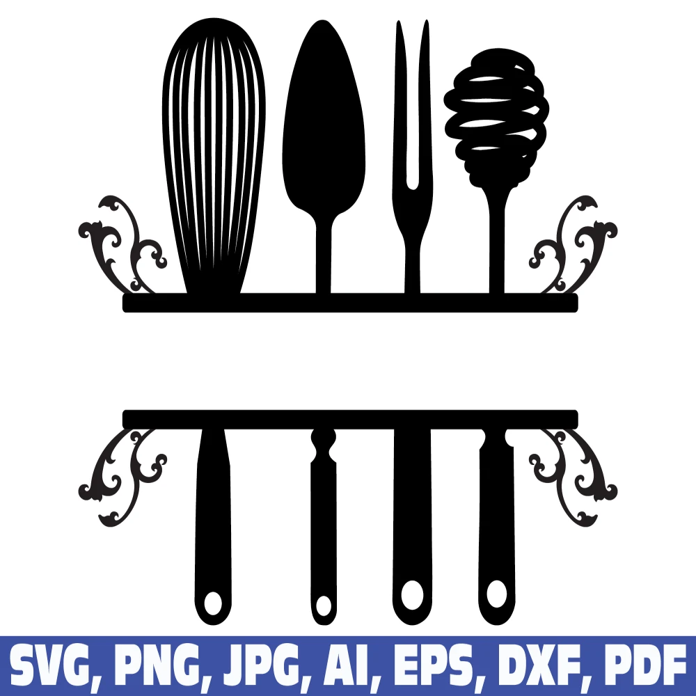 Kitchen split frame svg, kitchen svg, cooking svg, kitchen monogram svg, flourish kitchen svg, cooking monogram svg, cook svg, monogram frame