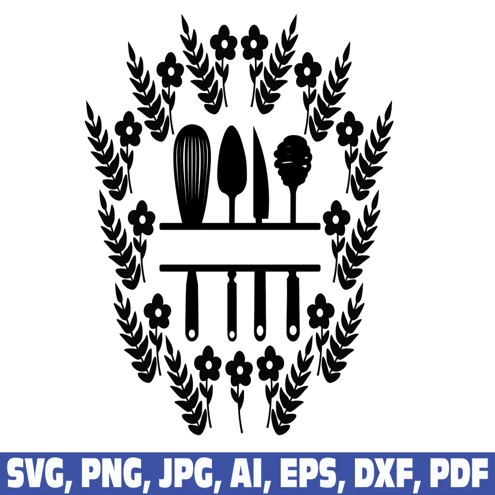 Kitchen split frame svg, kitchen svg, cooking svg, kitchen monogram svg, flourish kitchen svg, cooking monogram svg, cook svg, monogram frame