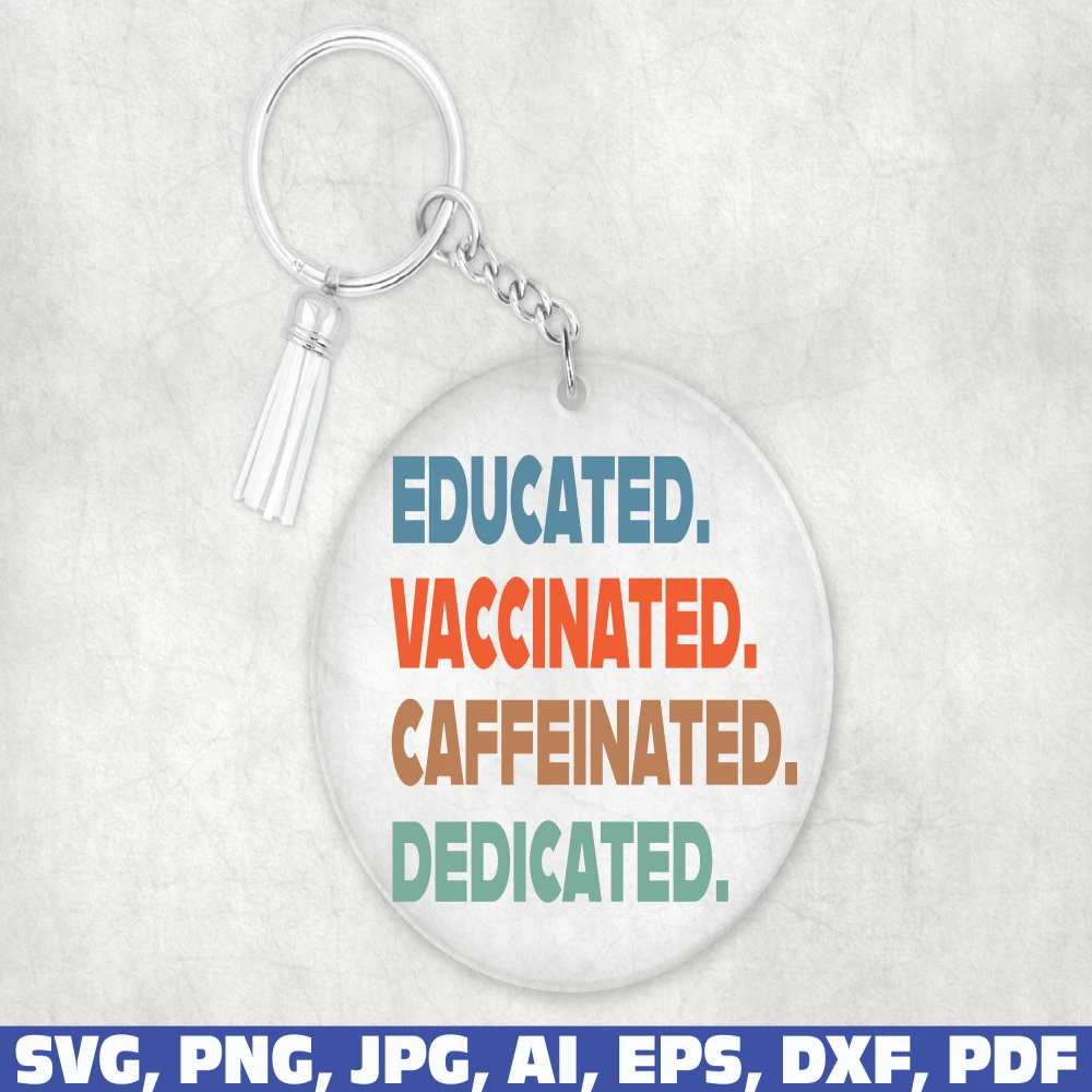 Educated Vaccinated Caffeinated Dedicated keychain svg, Keychain Pattern SVG, Key Ring Pattern , Key Ring svg, Round Pattern svg, Circle Patterns Svg, brush stroke svg, pattern