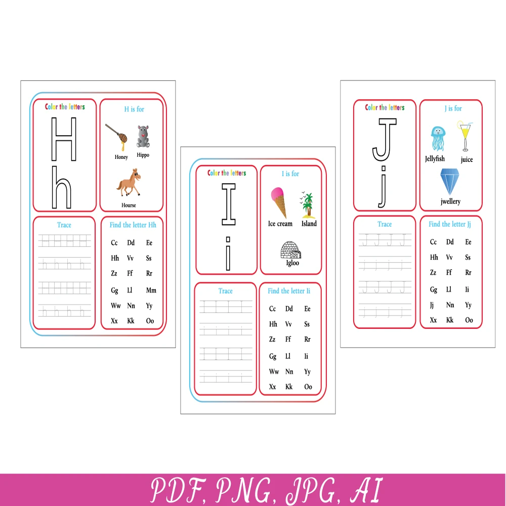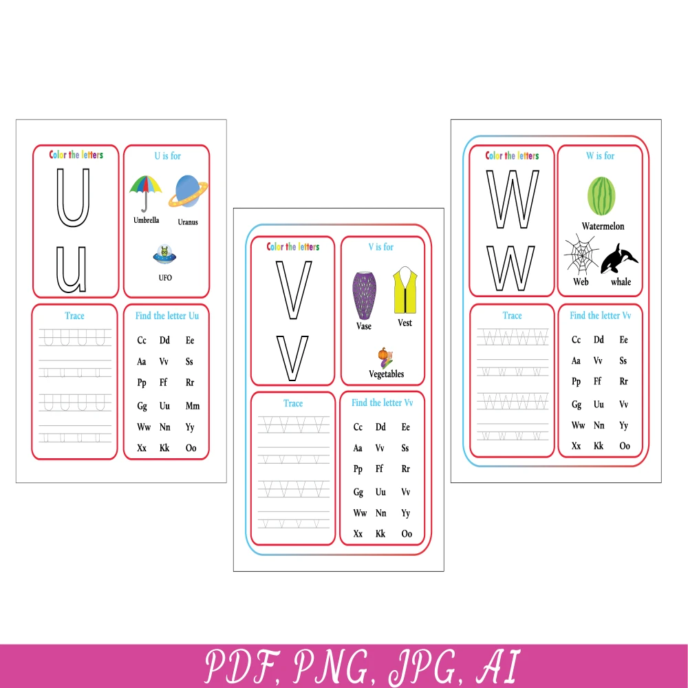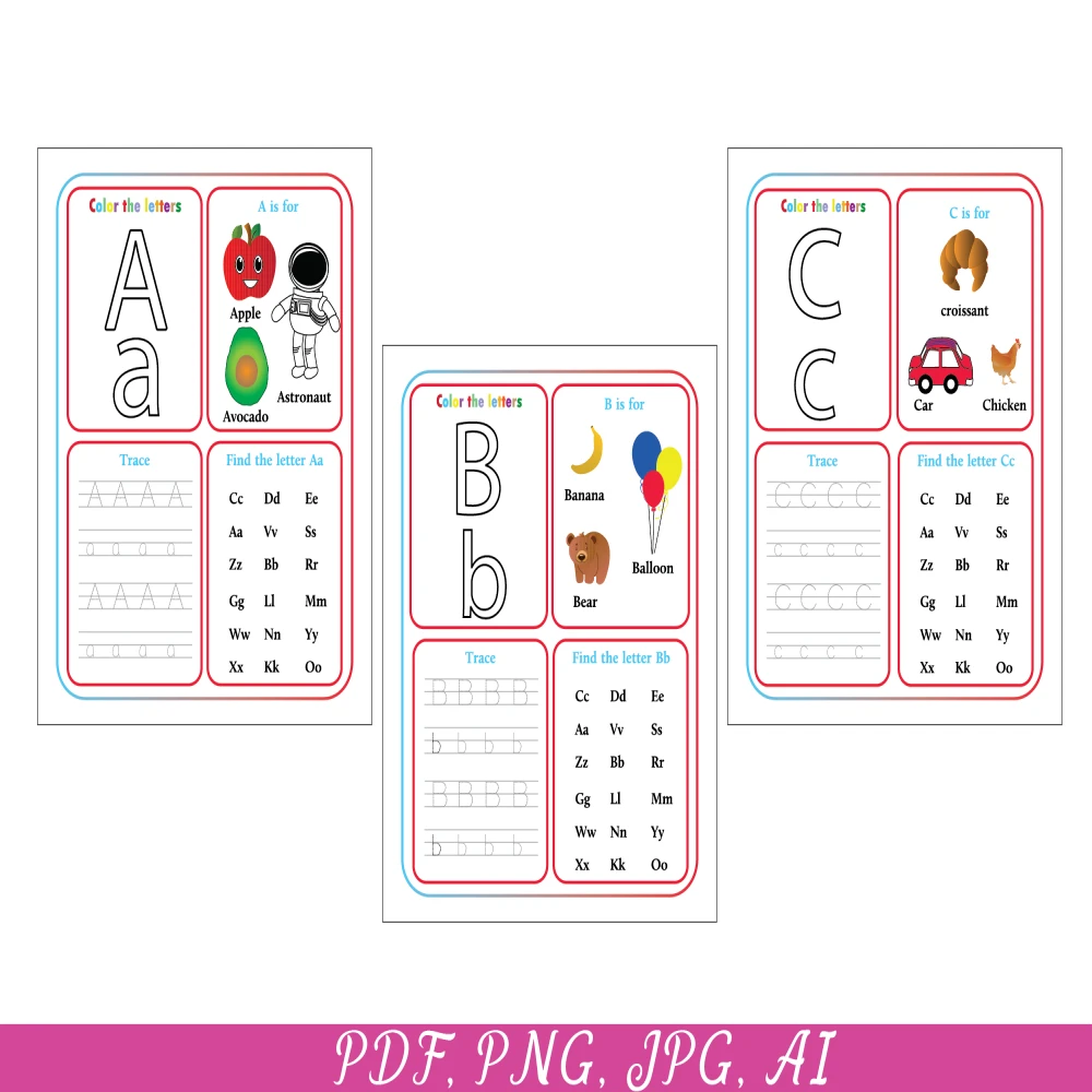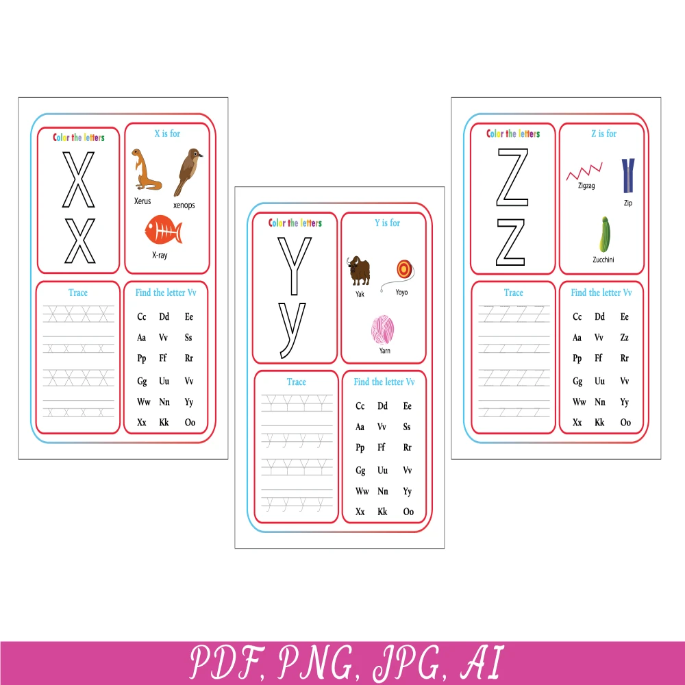 26 Printable Alphabet worksheets, Upper case, Lowercase, Kids activities, Alphabet Tracing pages, Preschool Learning, Alphabet, Tracing