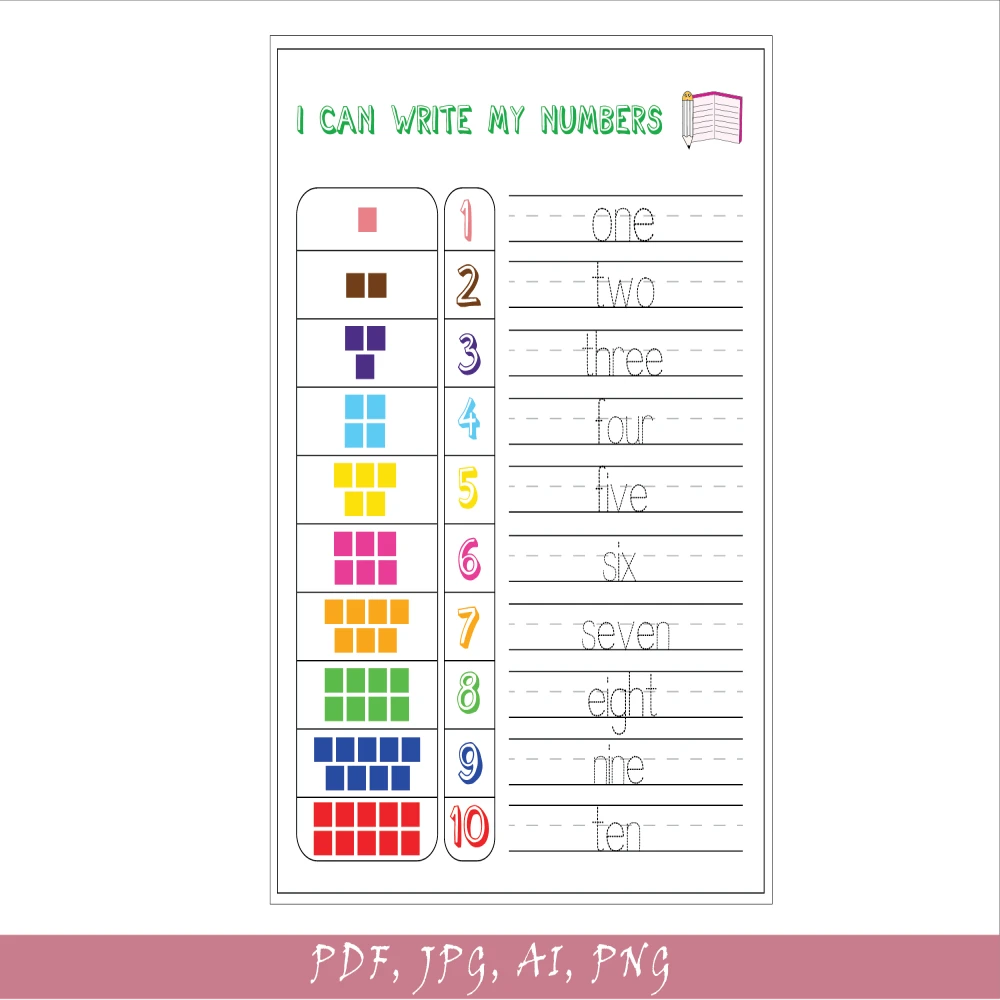 Number Tracing Practice - Numbers 1 through 10 - one through ten - number words - Busy Book - Homeschool Printable Activity