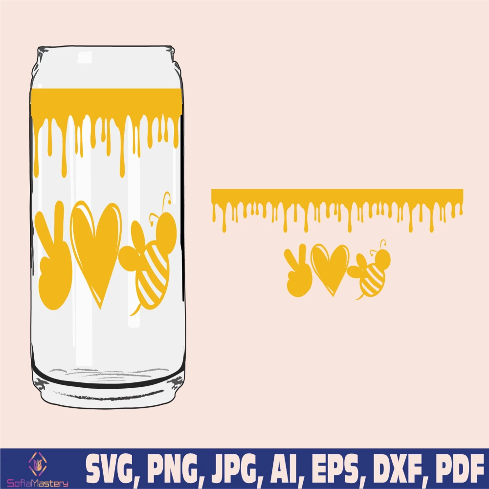 honey bee glass wrap svg png, can glass wrap, honey bee Glass Wrap Svg, 16oz Full Wrap Svg, Can Glass Svg, iced Coffee Glass wrap svg png