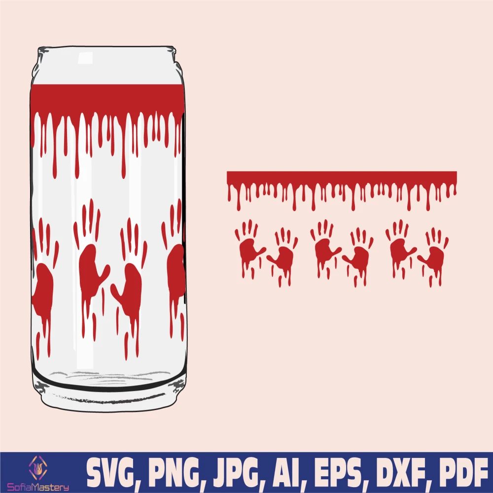 Scary bloddy hands print glass wrap svg png, can glass wrap, Coffee Glass Wrap Svg, 16oz Full Wrap Svg, Can Glass , coffee can glass svg