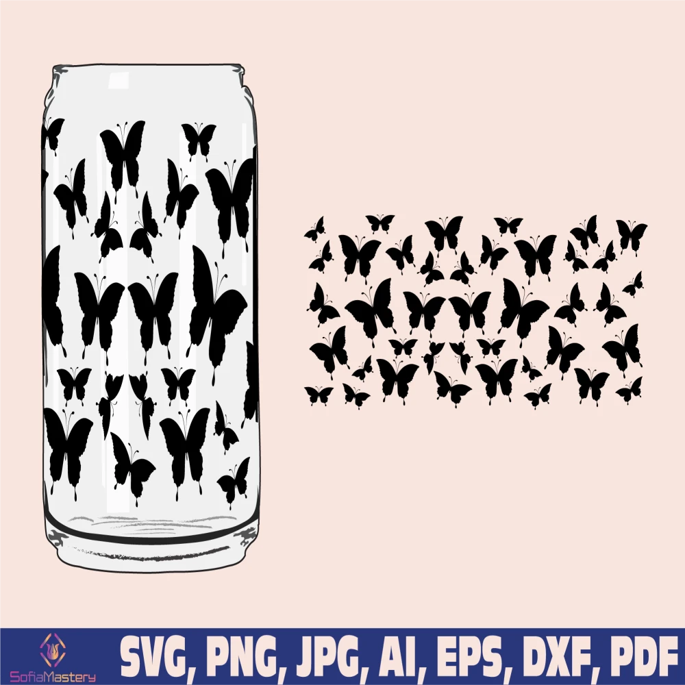Butterfly glass wrap svg png, can glass wrap, Coffee Glass Wrap Svg, 16oz Full Wrap Svg, Can Glass Svg, Butterflies Coffee Glass, Butterfly