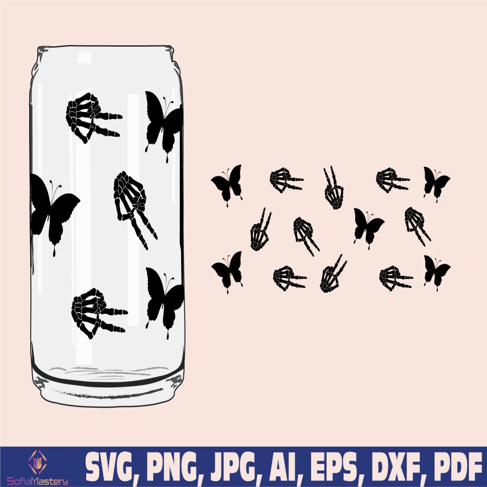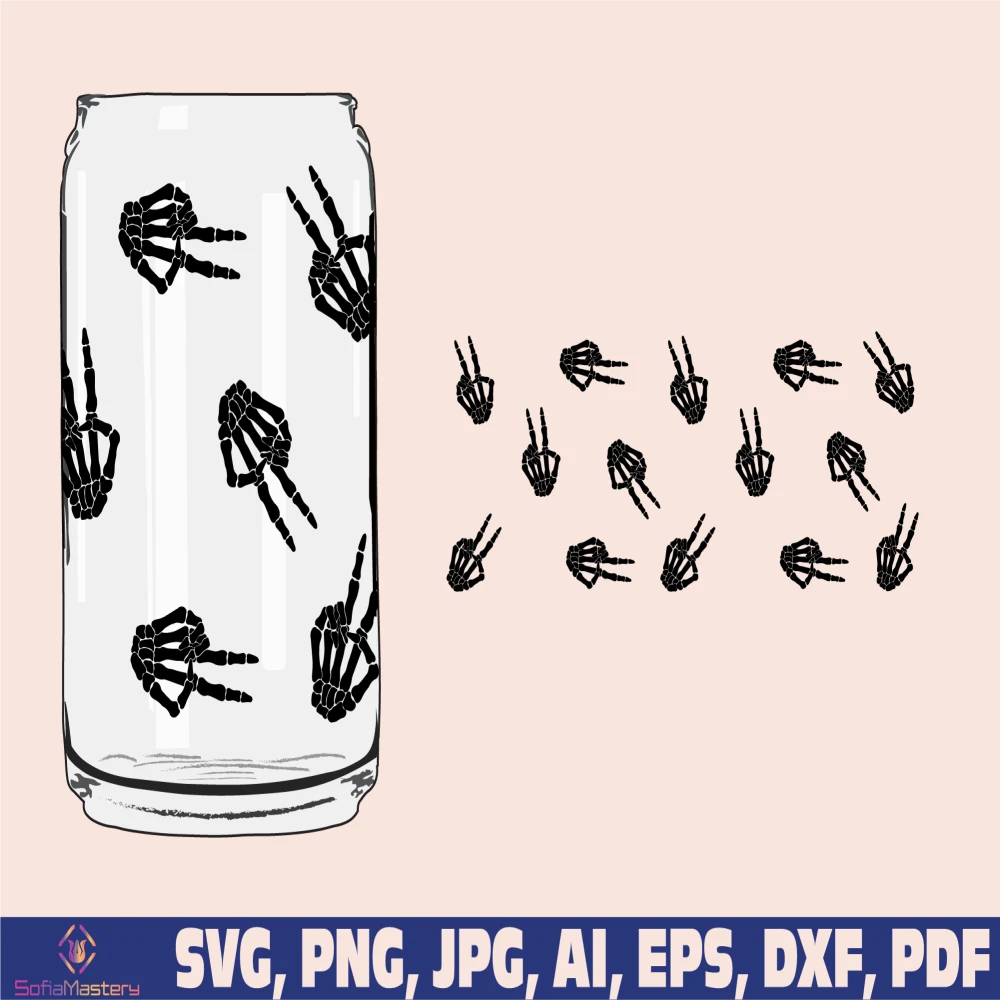 skeleton peace sign glass wrap svg png, can glass wrap, skeleton peace sign Glass Wrap Svg, 16oz Full Wrap Svg, Can Glass Svg, Coffee Glass
