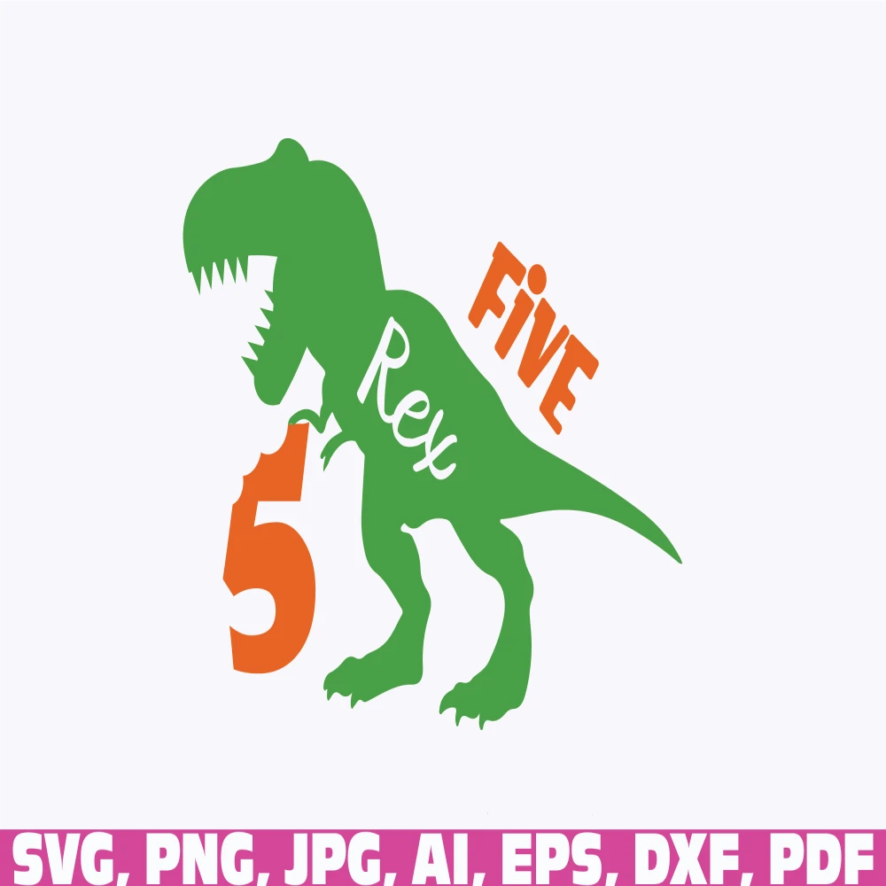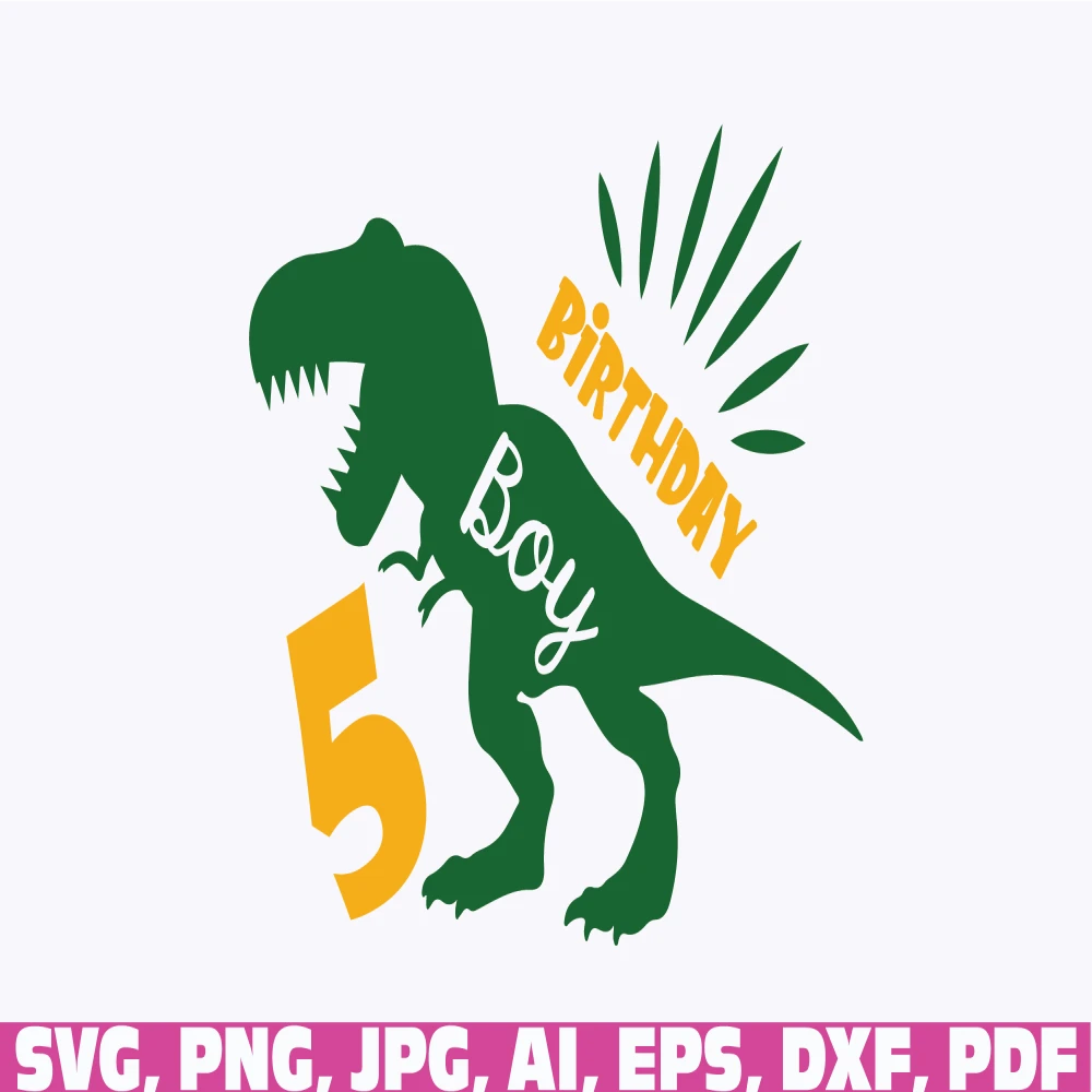 5th Birthday dinosaur svg, dinosaur svg, birthday svg, T-Rex birthday boys and girls svg, Kids Svg, dinosaur png, cute dinosaur svg, one