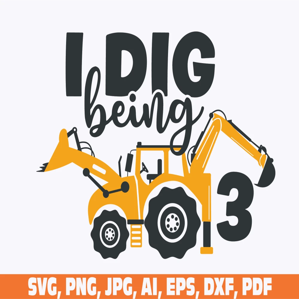 I dig being three , 3rd Birthday boy , Construction Birthday , baby Toddler Excavator , third Birthday , Excavator , three