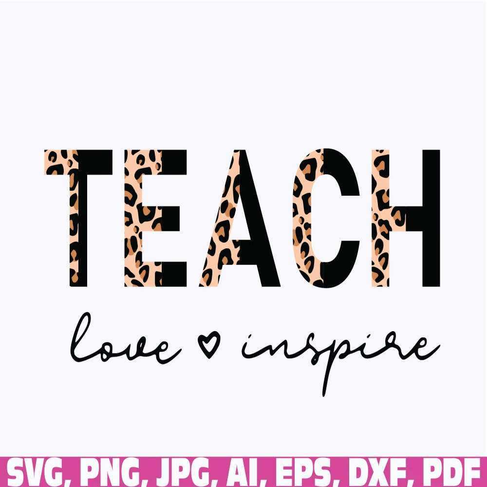 Teach Love Inspire Half Leopard svg png, teacher love inspire svg, teacher leopard cheetah print svg png, Virtual Teacher, Funny Teacher svg