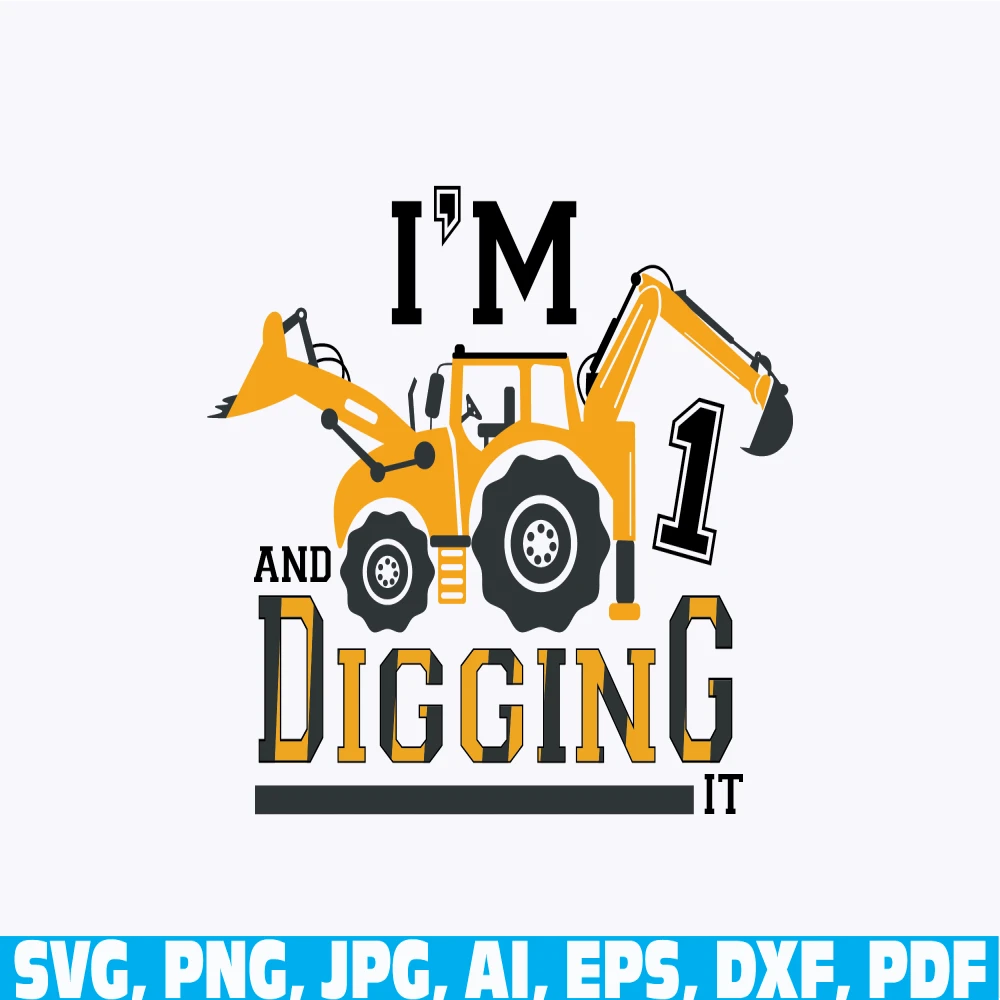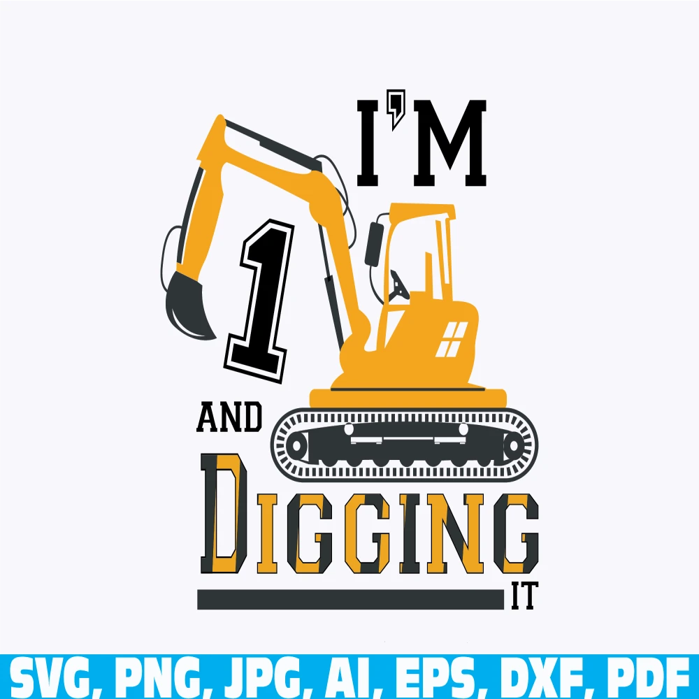 I am 1 and digging it, Birthday boy, Construction Birthday, baby Toddler Excavator , boys kids Birthday , Excavator , birthday