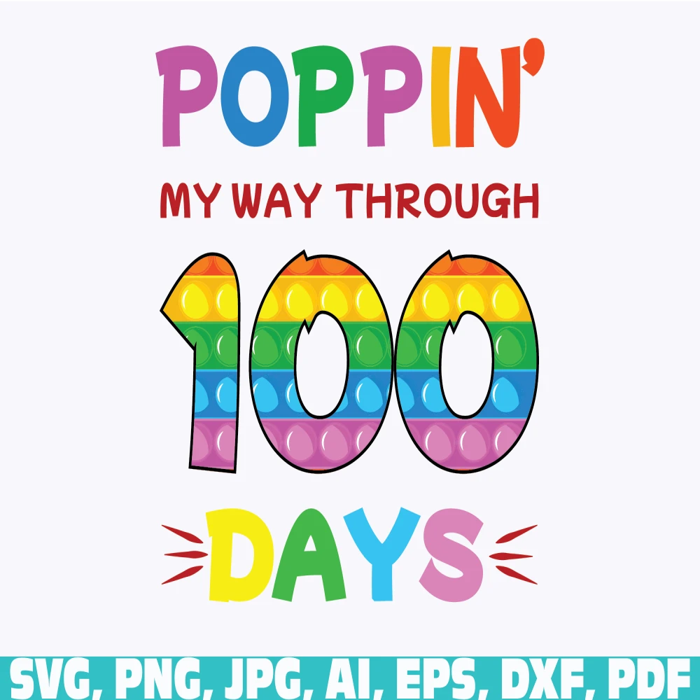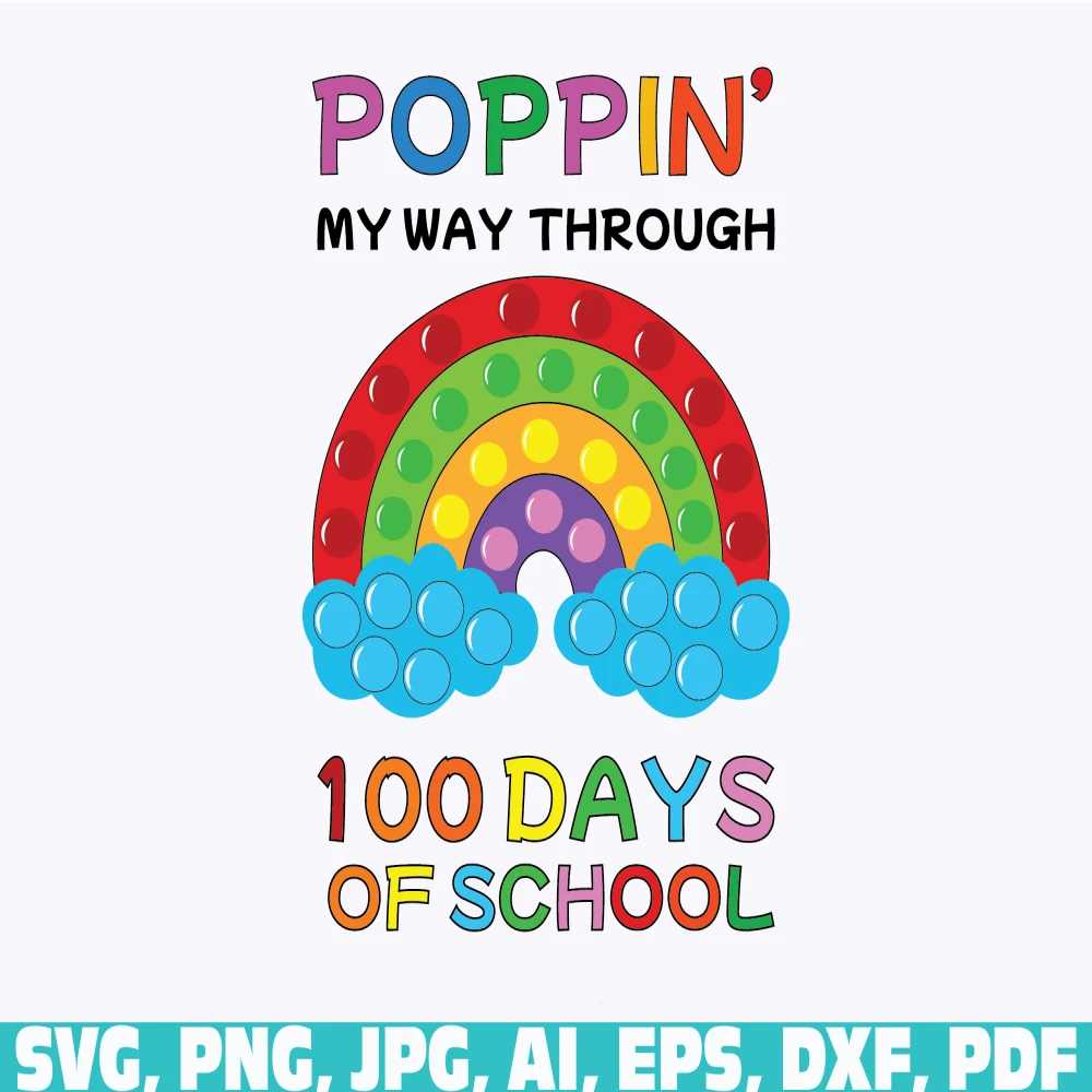 Poppin My Way Through 100 Days, 100 Days, 100th Day of School, pop it 100 days, Fidget Toy Popper Pop It Rainbow, Poppin My Way Through 100 Days