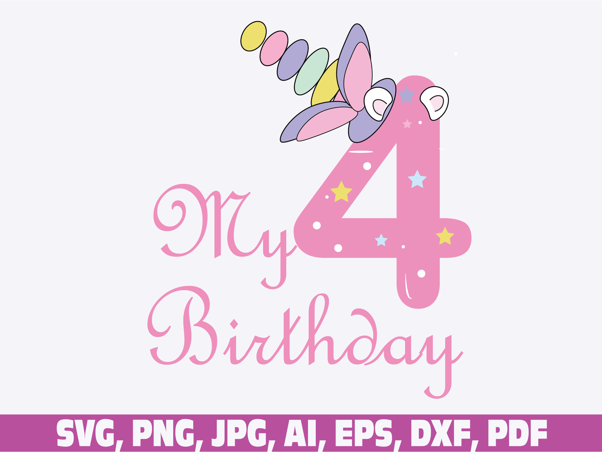 My 4th Birthday, Fourth Birthday, Unicorn Birthday, Birthday Girl, Unicorn Birthday Shirt, Cut Files
