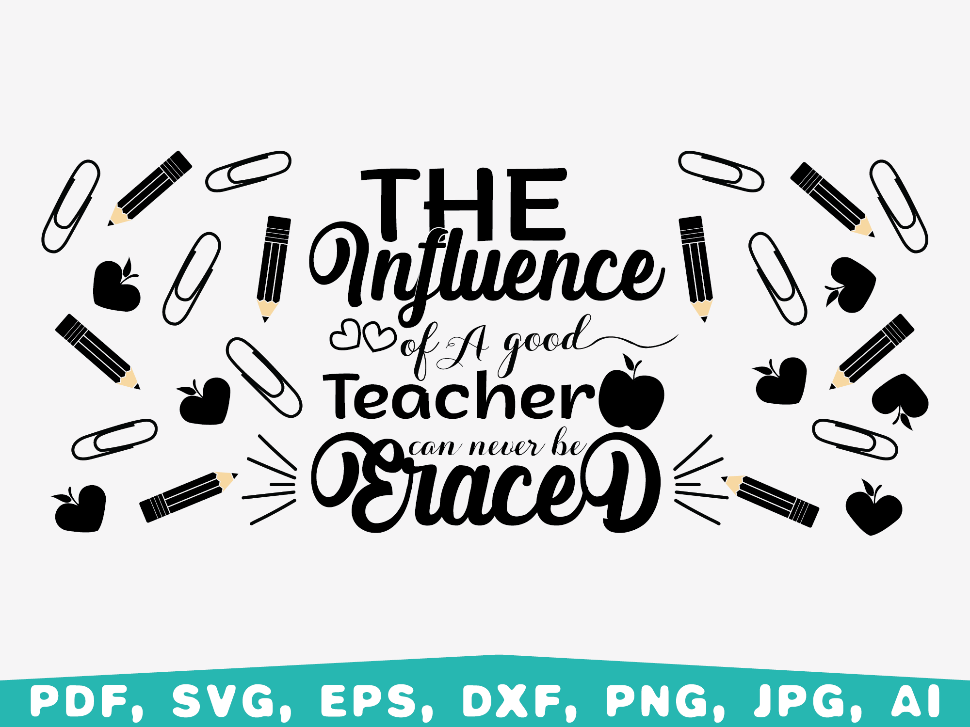 The influence of a good teacher can never be eraced glass wrap svg, Teacher glass wrap svg, 16oz can glass svg, Coffee Libbey 16oz Can Glass Wrap, libbey glass svg, Teacher glass wrap Bundle svg, Can glass svg