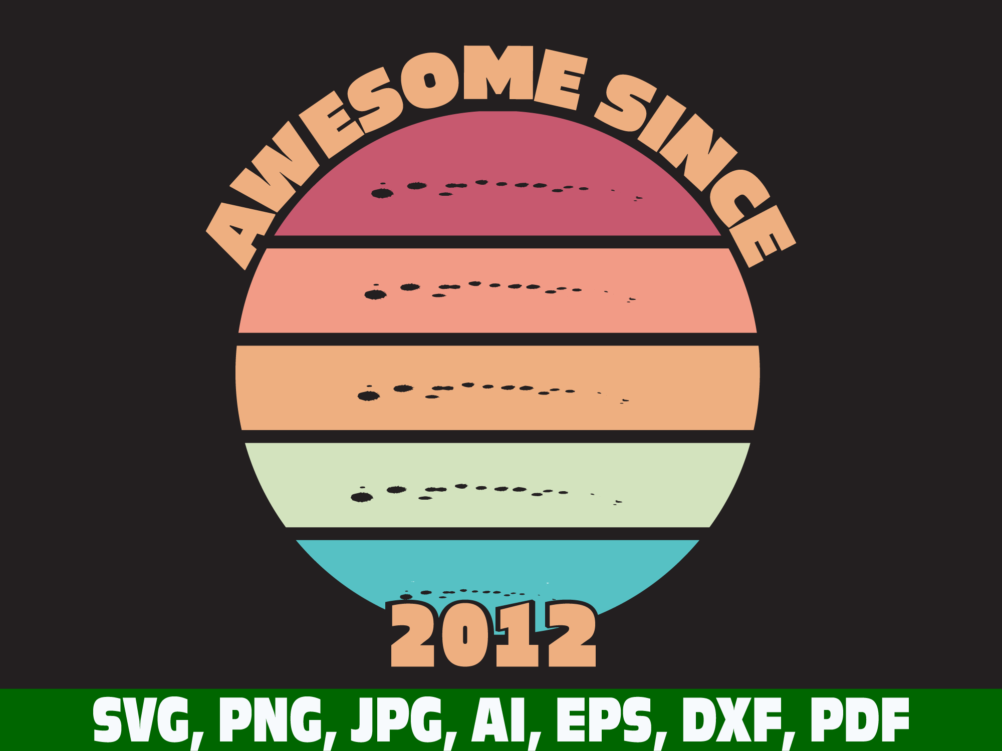 Awesome Since 2012 Svg png, Awesome Since 2012 Rainbow Svg, Birthday gift Svg, made in 2012 svg, Retro Vintage, Birthday Boy Svg, Birthday Girl Svg