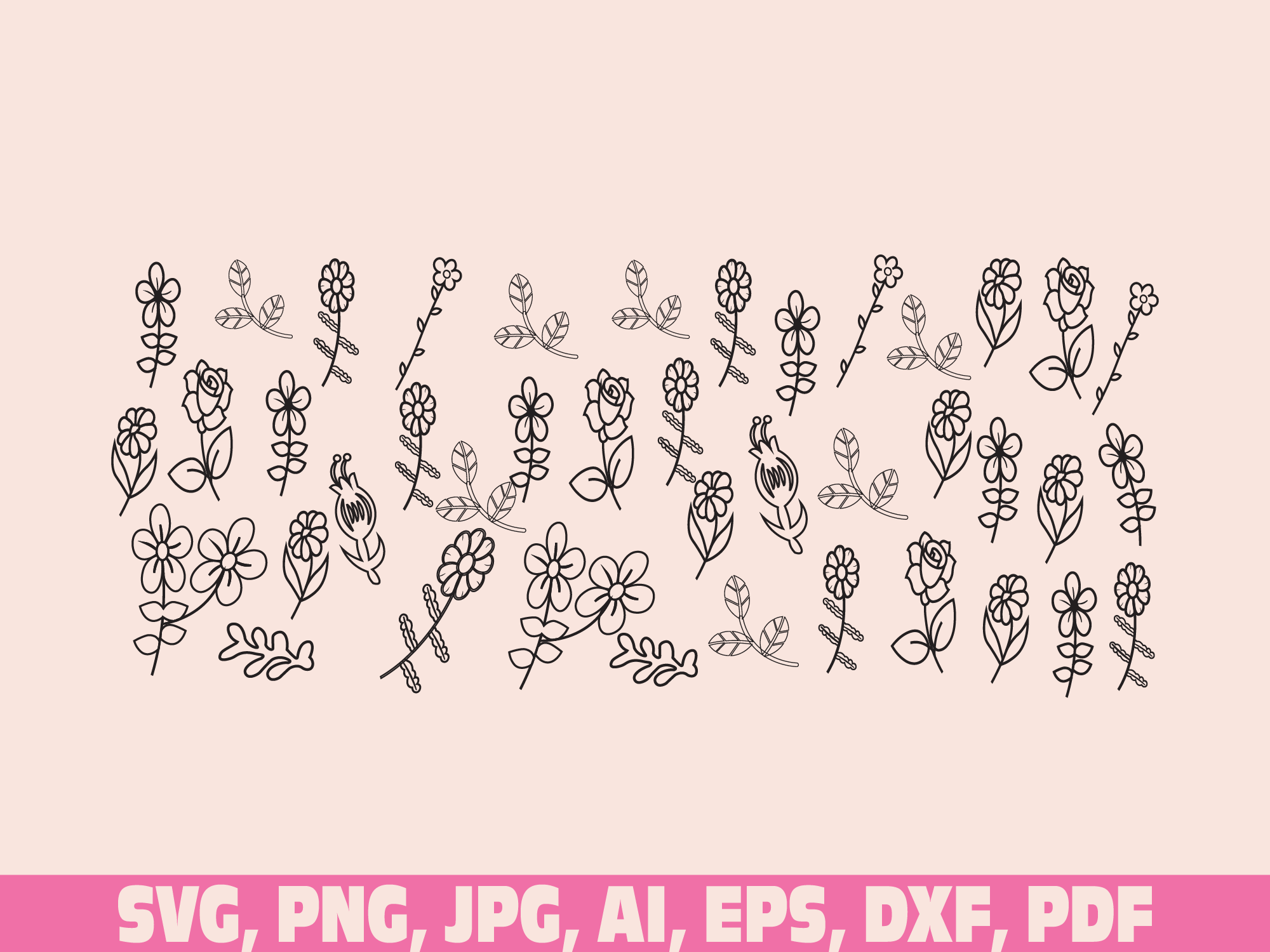 Wild Flower glass wrap svg png, can glass wrap, lined Flower Glass Wrap Svg, 16oz Full Wrap Svg, Can Glass Svg, Daisy Coffee Glass svg, Flowers glass wrap svg