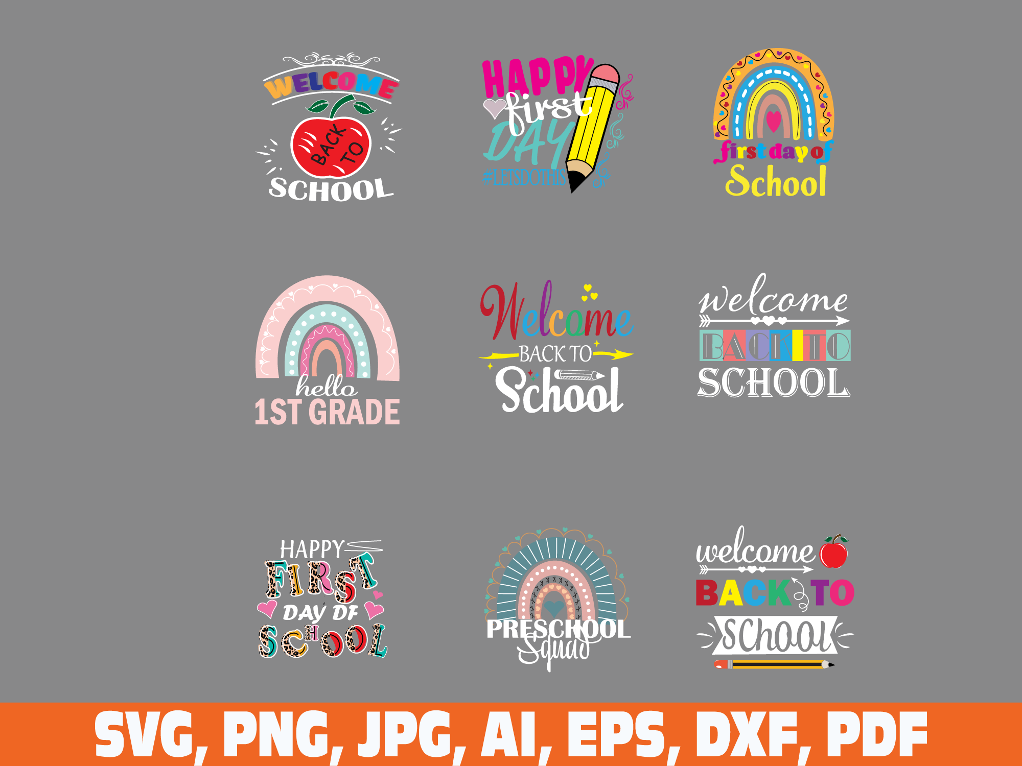 Back to School Bundle svg png, FIrst day of School svg, Teacher svg, School svg, School Shirt svg, Silhouette svg, Welcome back to school svg, School Rainbow svg