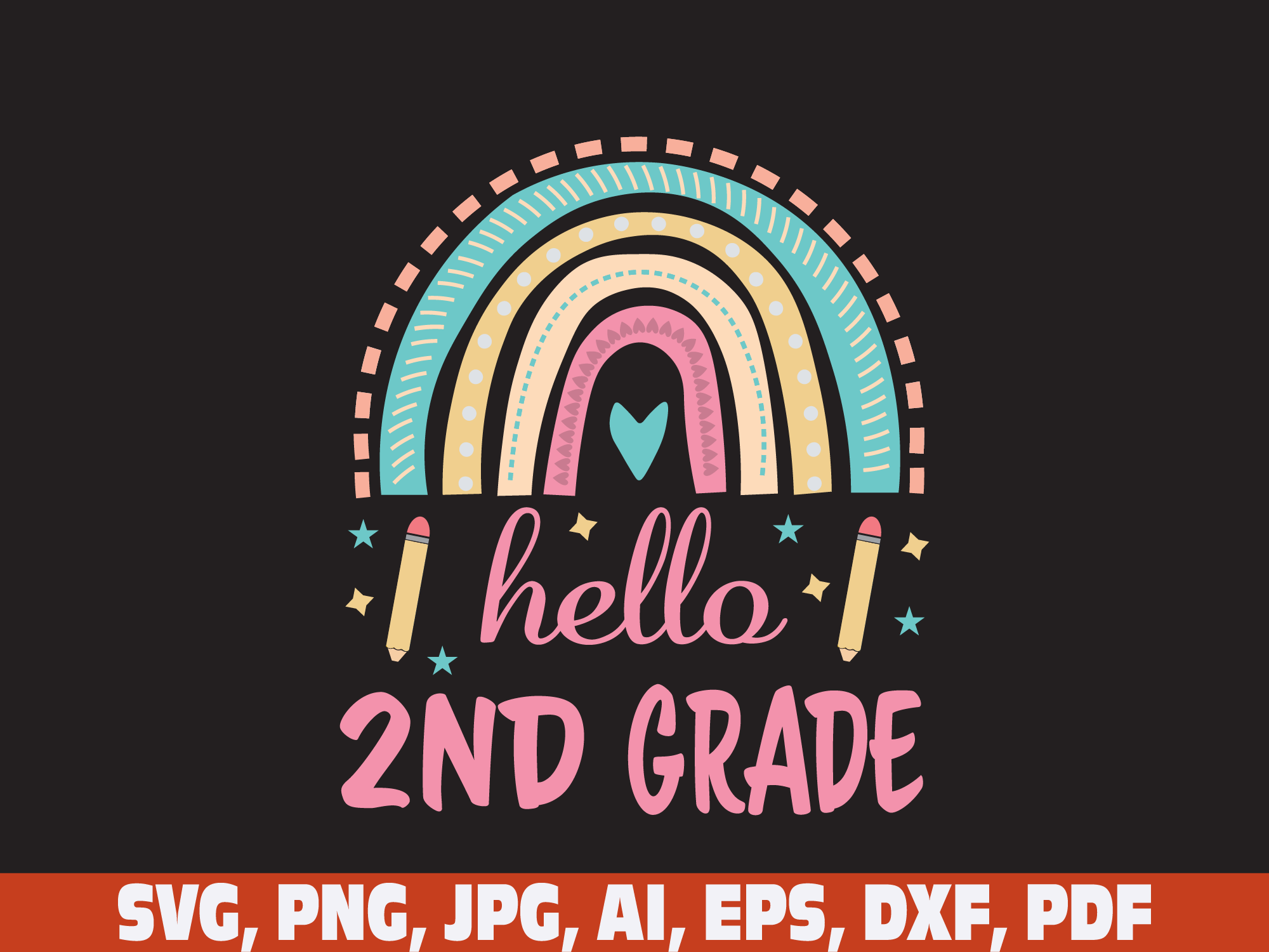 Hello Second grade Rainbow svg, 2nd grade svg, Back to School svg, Happy first day of School svg, First day of School svg, Back To School Shirt Svg, Teacher svg, School svg, School Shirt svg, Silhouette, Boho Rainbow svg,