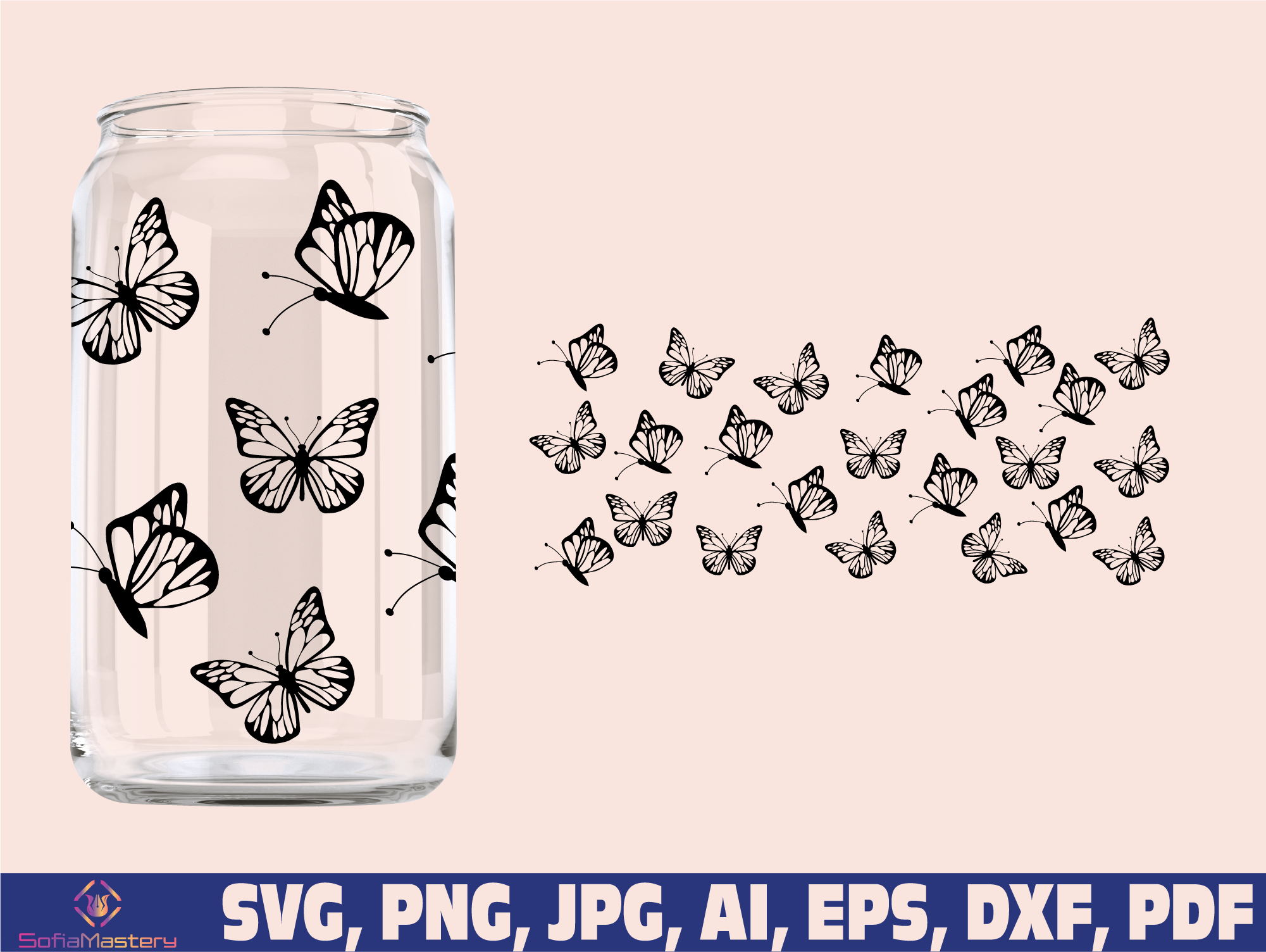 Butterfly glass wrap svg png, can glass wrap, Coffee Glass Wrap Svg, 16oz Full Wrap Svg, Can Glass Svg, Butterflies Coffee Glass, Butterfly