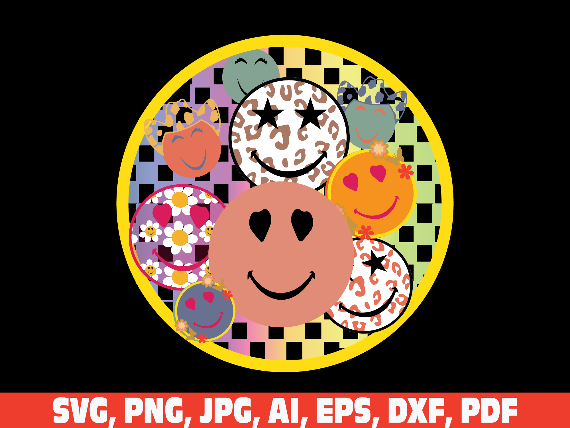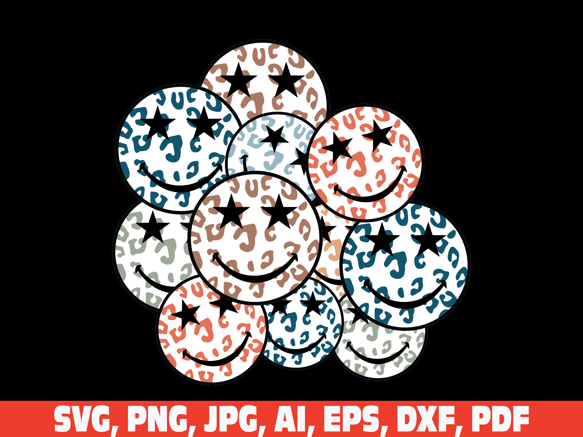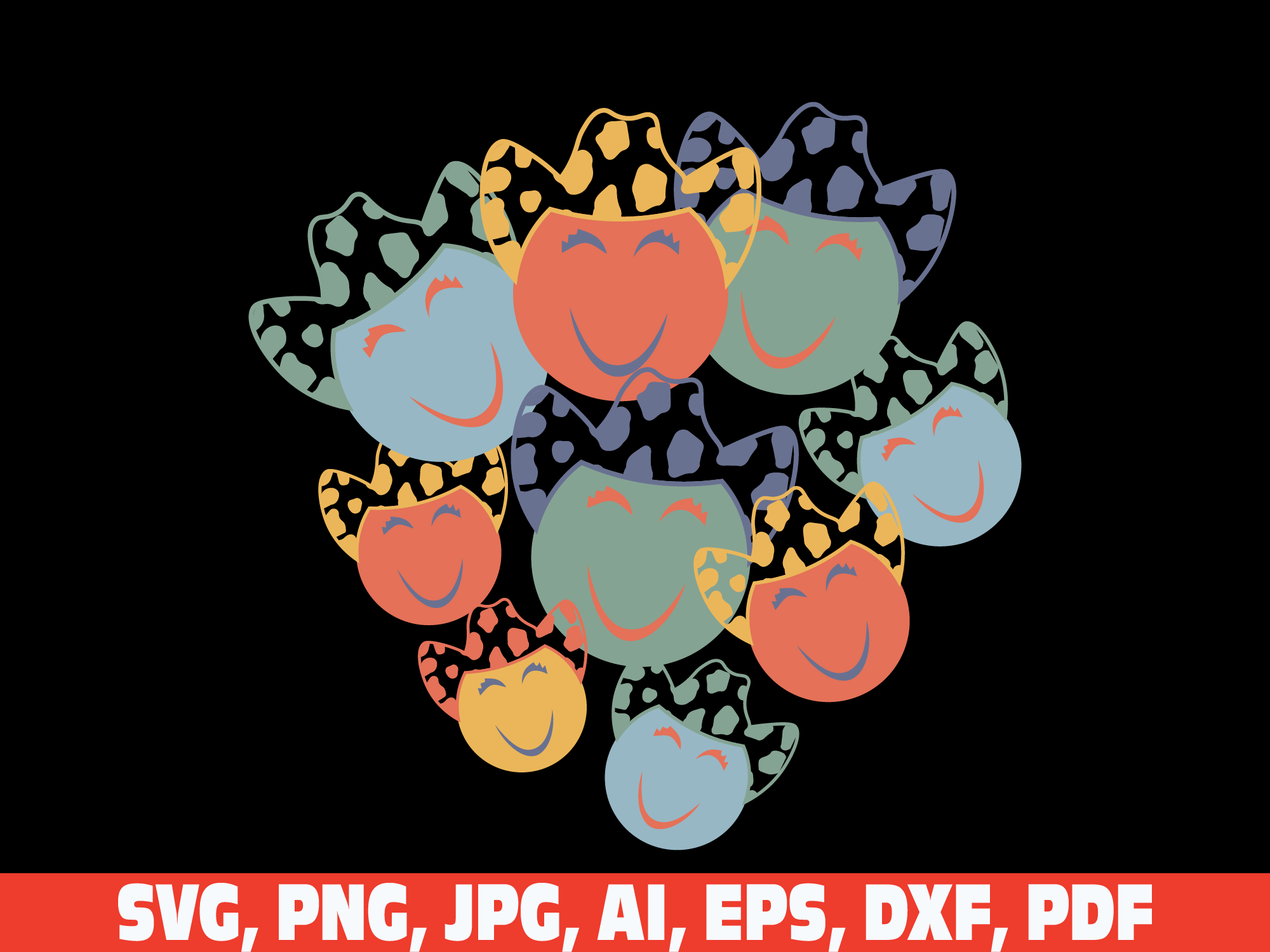 100 days of school retro vintage smiley face svg png, 100 days of school svg, 100 days smarter svg, leopard smile face 100 days of school