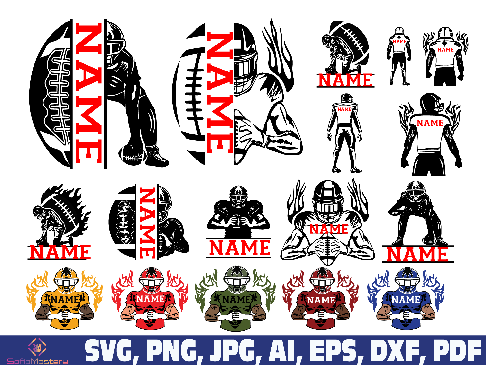 Football svg, football player svg, Football name svg, football team svg png, American Football Player Svg, Football Shirt svg, Half Player
